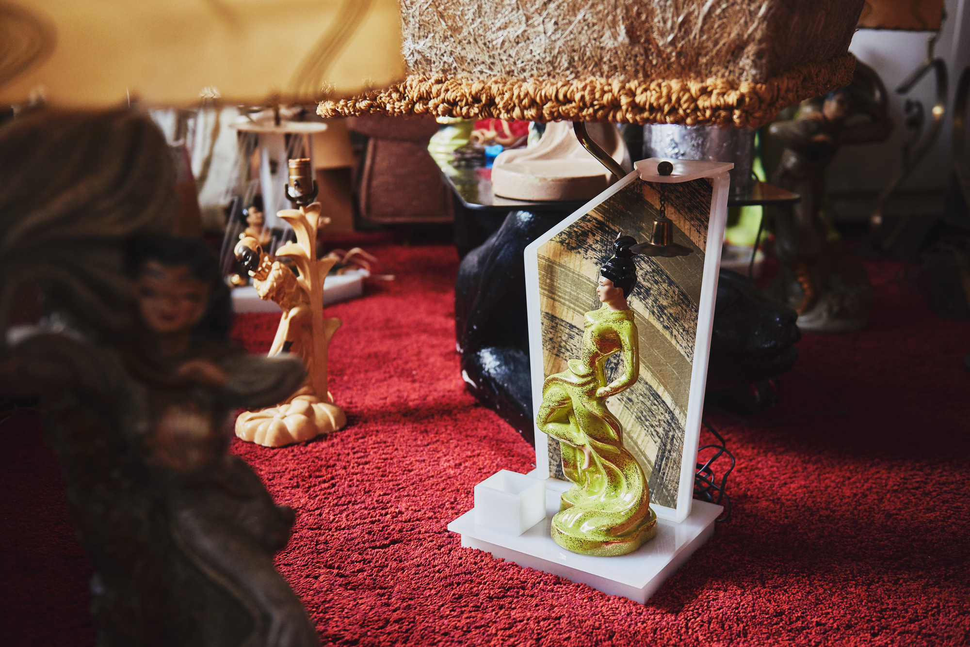 50年代に作られたビンテージランプです。フィギュア付きのMOSS LAMPは年々入手困難になっていて程度の良好なものになると本当に希少です。こちらの商品は比較的大型で存在感がすごいです。逆台形のシェード部分もすごく凝った作りになっていて見応えがありますよ。コンディションは大きな痛みも無く状態良好です。※電球は付属しません。
