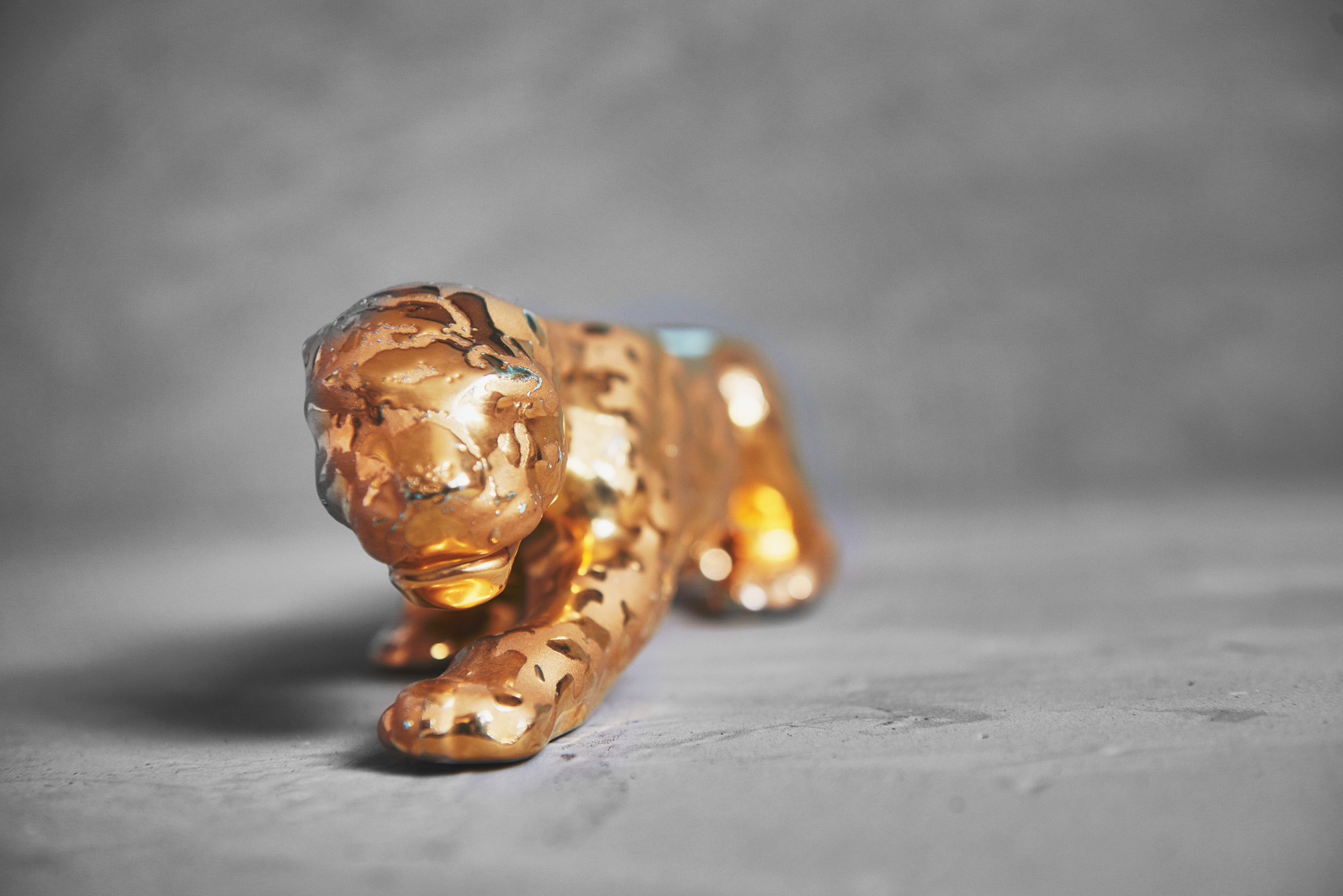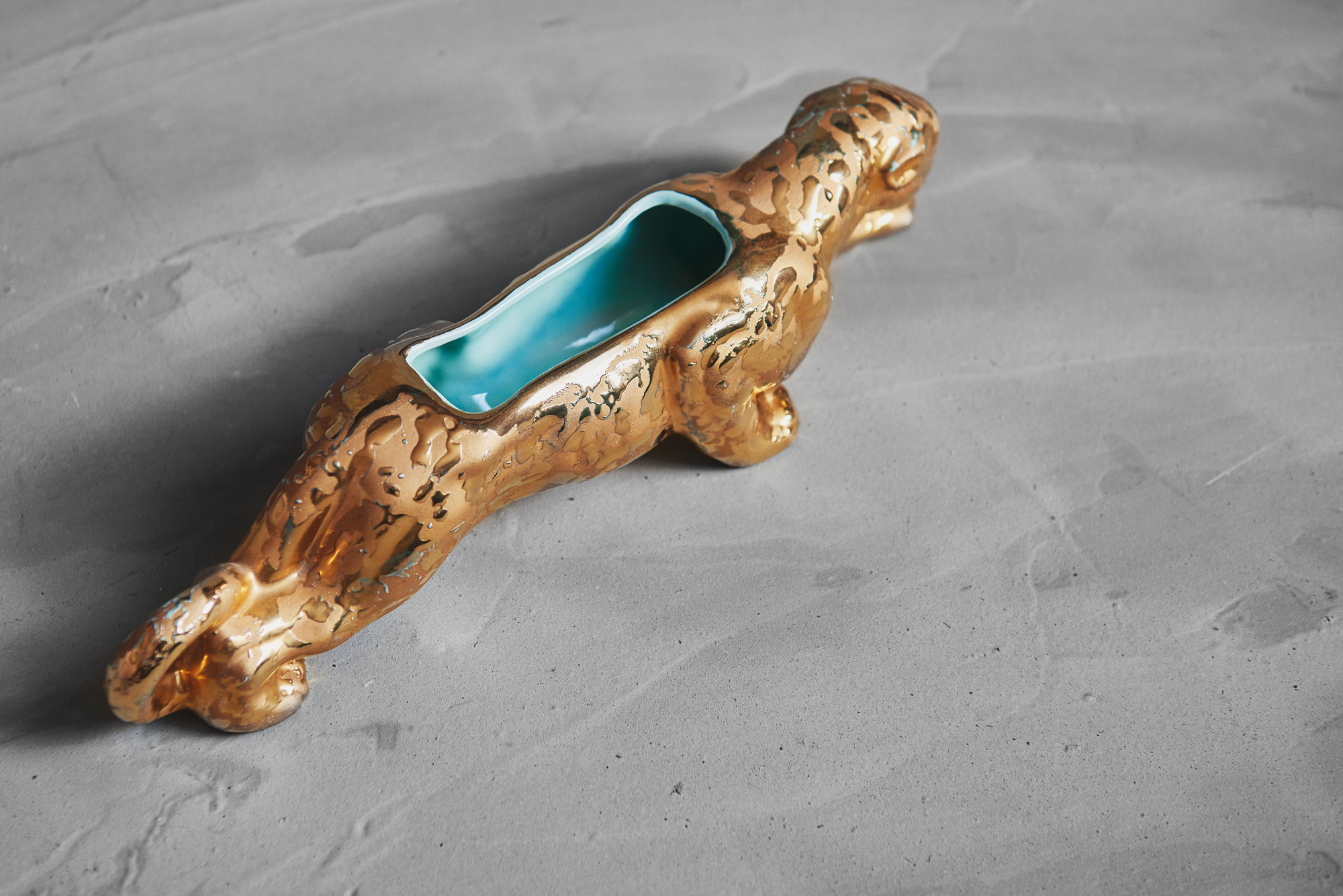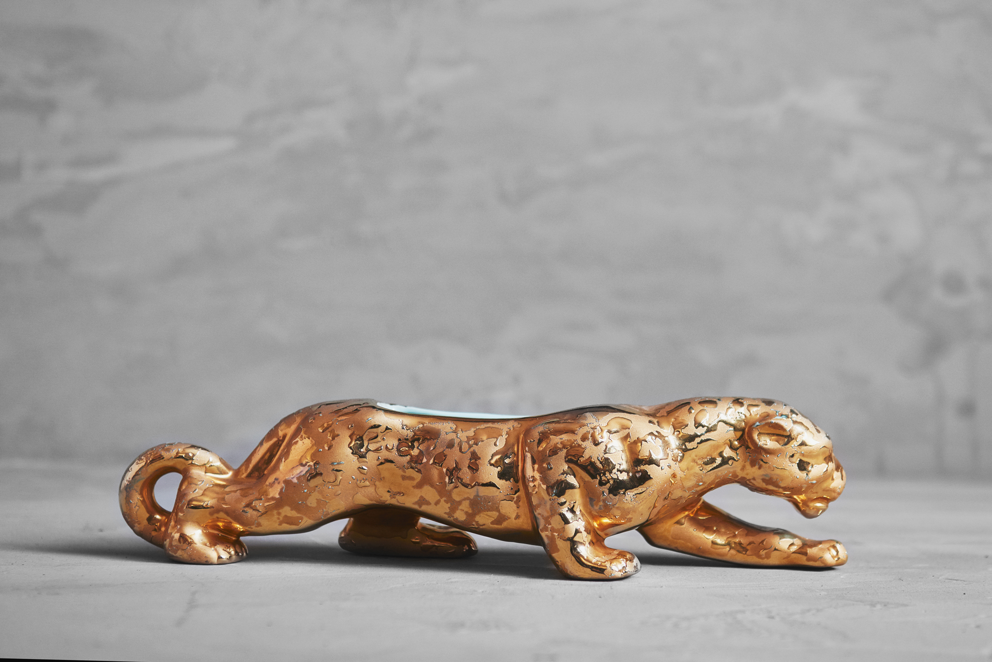 50年代に作られた飾りプランターです。当時に流行したパンサーをモチーフに作られています。こちらはなんと24金をつかって絵付けされております。金色の塗装が流行った年代ですがこれは贅沢ですね。プランターポケットが背中部分にあるので植物を植えた場合、背中から植物っていうちょっと不思議な感じになってしまいますがそれはそれでいい感じです。