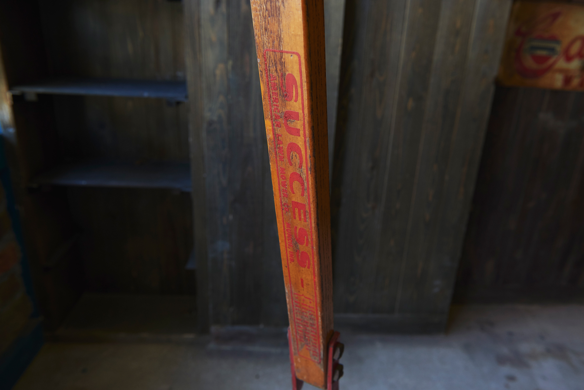 古い木や錆びついた鉄の質感、差し色の赤の組み合わせが抜群でただ置いてあるだけでもいい雰囲気を作ってくれますよ。