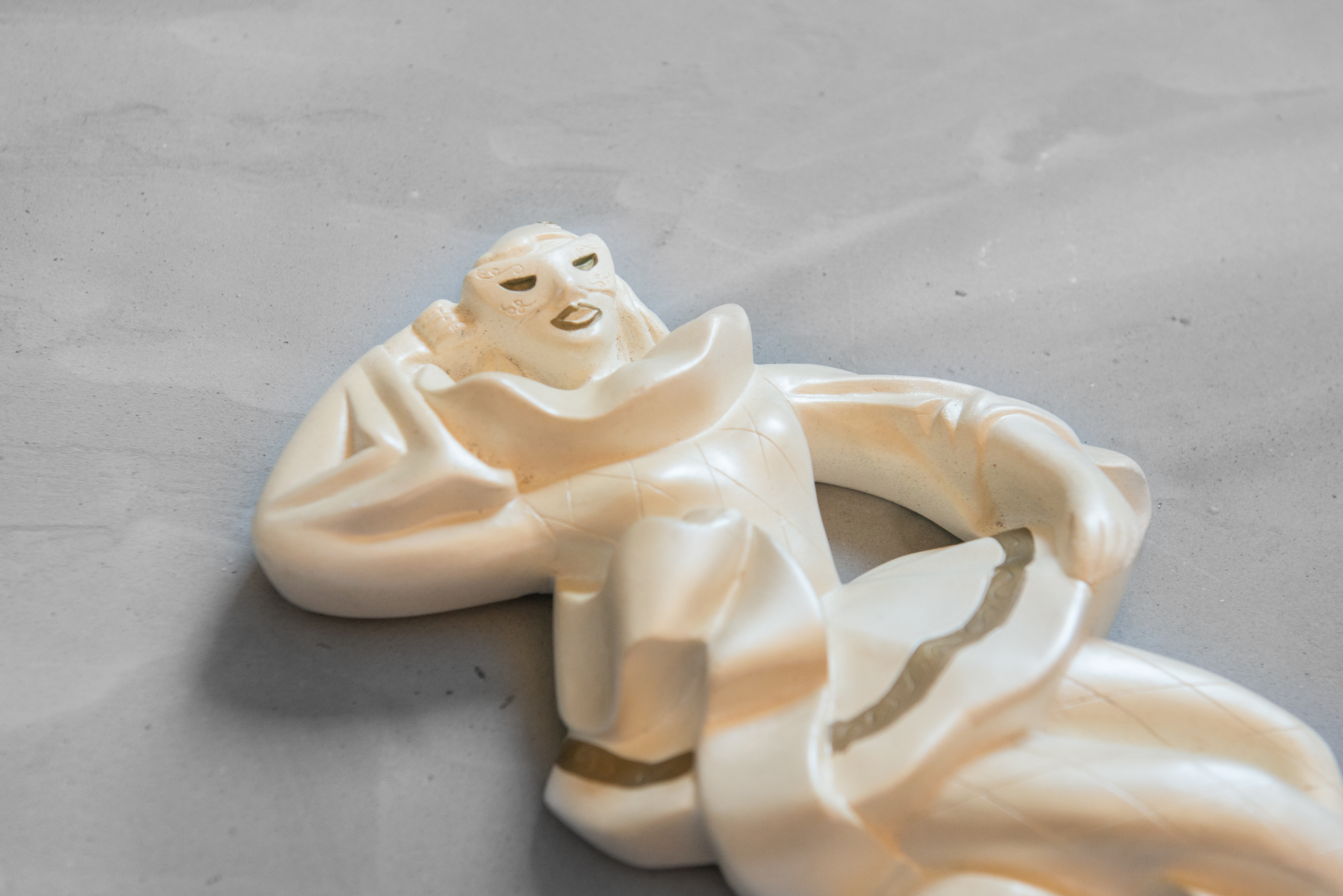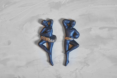 50年代を代表するアイテムのひとつハーレクインをモチーフにした壁飾りです。石膏を使って作られたベースに白と金で塗装してあり、いかにも50年代の雰囲気を醸し出しています。男女の仕草には躍動感があって実にハーレクインらしい作りになっていますね。コンディションは一部ペイントロスやカケがあります。お部屋やお店の雰囲気作りにいかがでしょう。