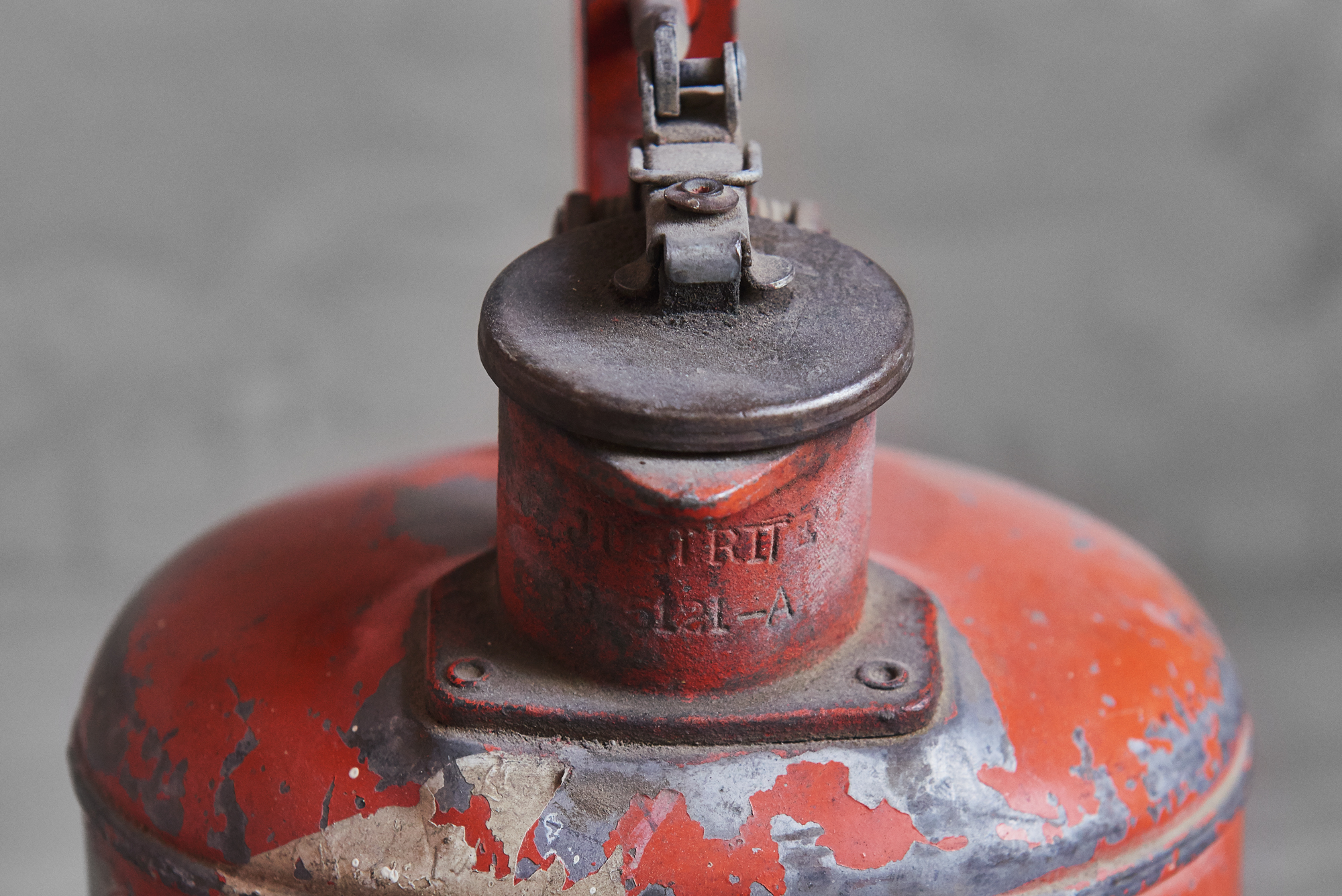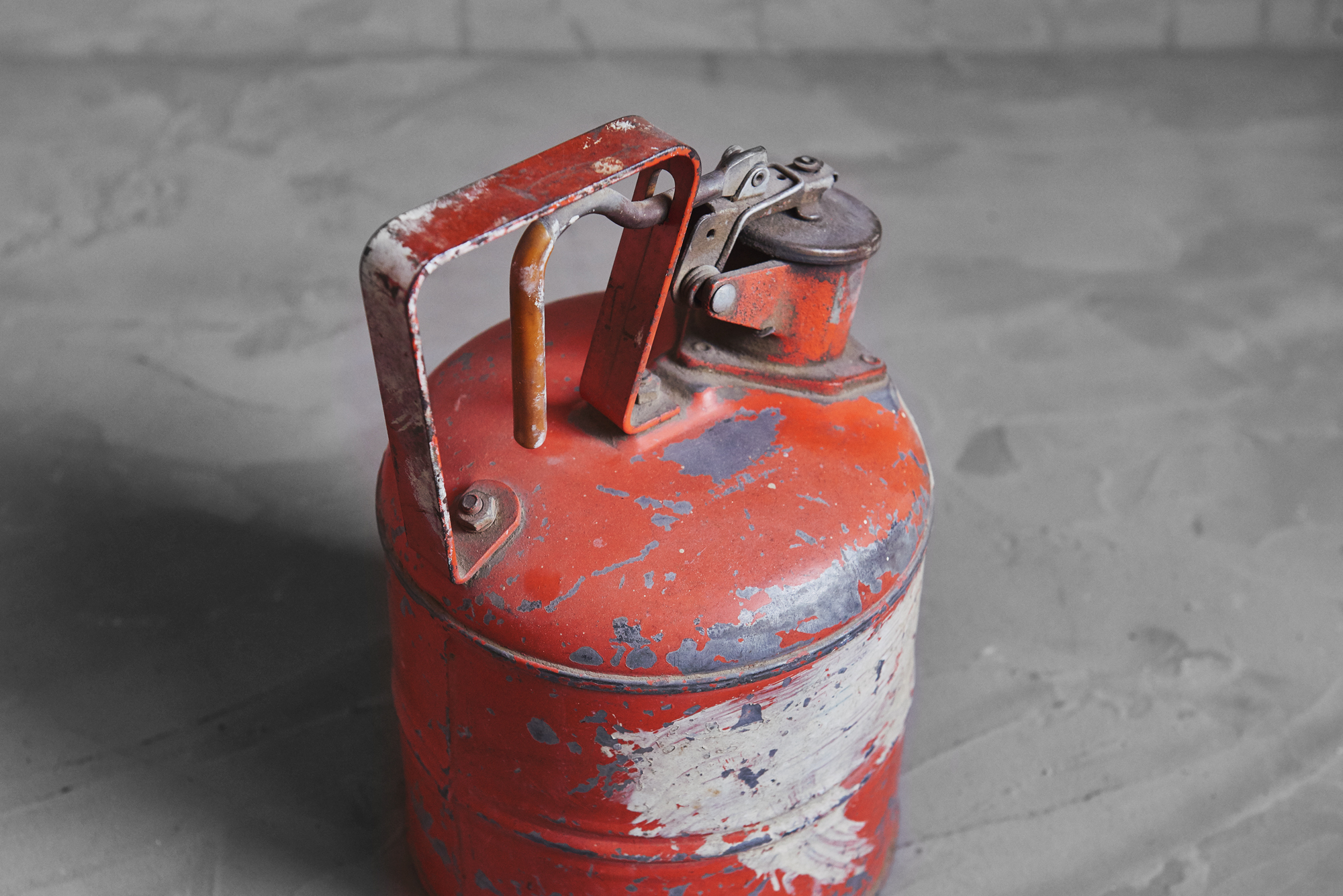 ビンテージ缶です。作られた年代は不明なのですが、作りからして結構古いものになるかと思います。丸い筒型の缶に結構立派なそそぎ口がついています。蓋になる部分には持ち手のレバーにつながる金具が付いていてそれを引けば片手で蓋の開閉ができるようという優れものになっています。そんな優れものなこちらなのですが実際に使われていたもので缶内部の詳しい状態がわからないのであくまでディスプレイ用としてお考えください。